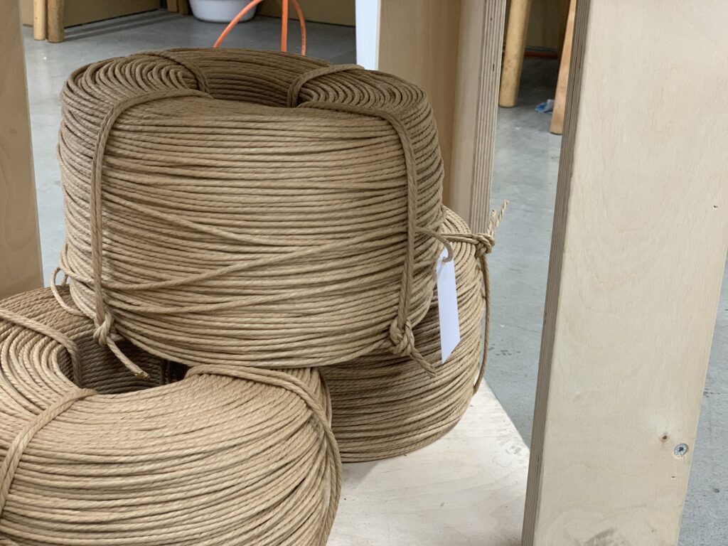 ペーパーコードは1ロールで約4脚分。Yチェア1脚あたり、およそ120mもの長さを使用します。