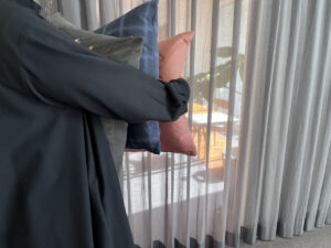 さらに、中材には山副さんが選び抜いた高品質なフェザーを贅沢に詰め込みました。触れた瞬間に吸い付くような柔らかさと、身体を優しく受け止める確かな復元力。それは、インテリアを知り尽くしたデザイナーならではの、心地よさへの解答のようにも感じられます。